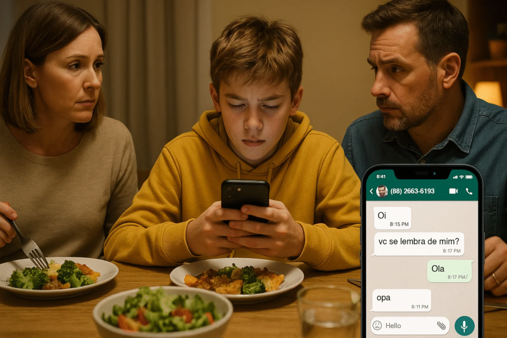 Enquanto você está aqui, ele pode estar em grupos com adultos, recebendo mensagens obscenas ou sendo manipulado por alguém muito mais velho.